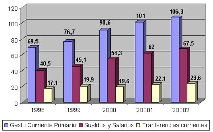 estos dos rubros representan el 87% del incremento del gasto corriente.