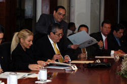sostenida entre la Primera Dama con las autoridades del banco quienes