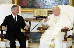 ser recibido por el Papa Juan Pablo Segundo, como parte de una gira que