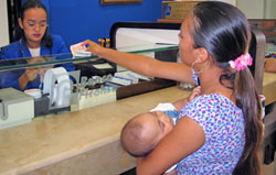 Una de las primeras personas en llegar a la ventanilla
