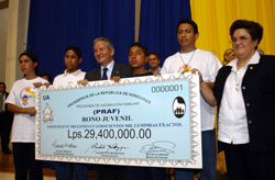 Ricardo Álvarez; la directora del PRAF, Elizabeth Zúñiga